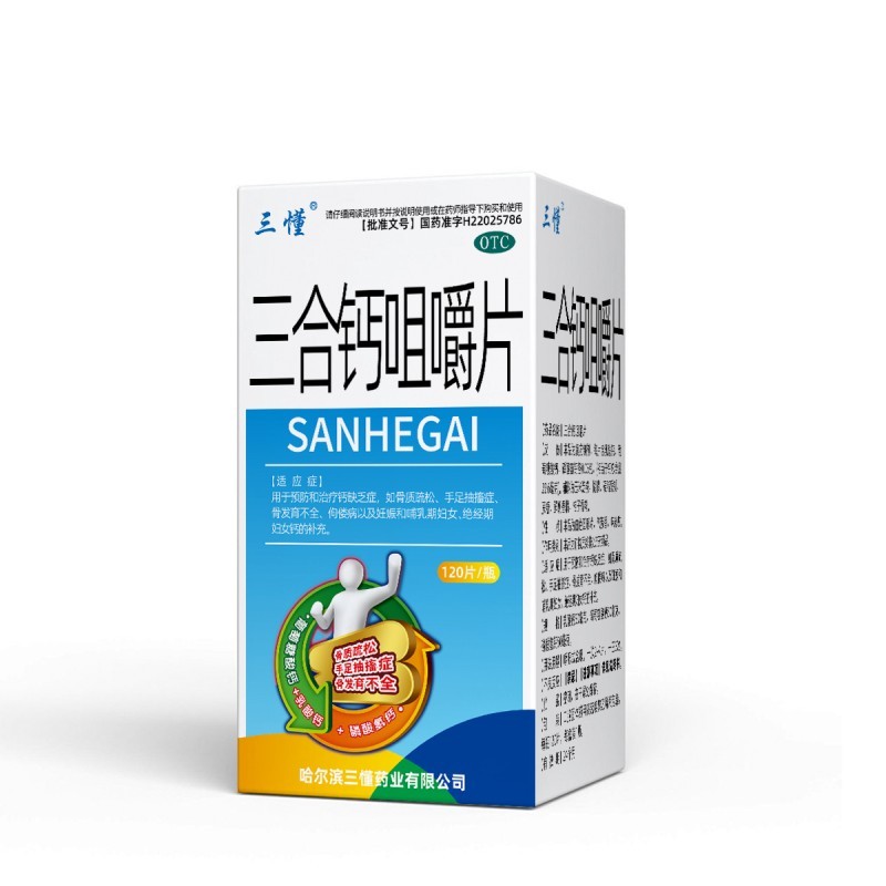 成份 | 三合钙咀嚼片为复方制剂,含有乳酸钙、葡萄糖酸钙、磷酸氢钙 |
